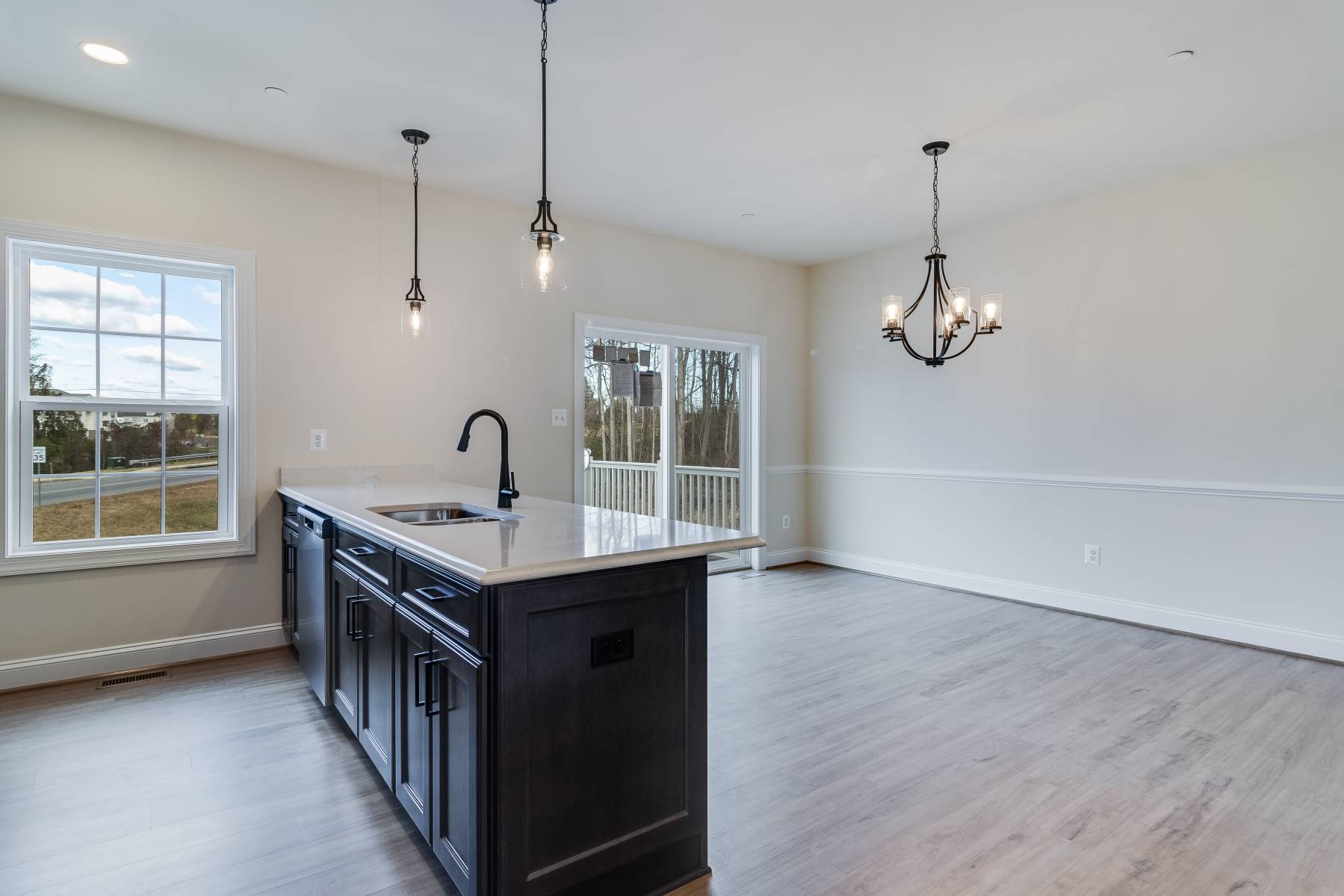 The second floor encompasses a large family room, kitchen with upgraded cabinets and granite or quartz countertops, walk-in pantry, powder room, and dining area with sliding door that opens to a 14x12 maintenance free deck.